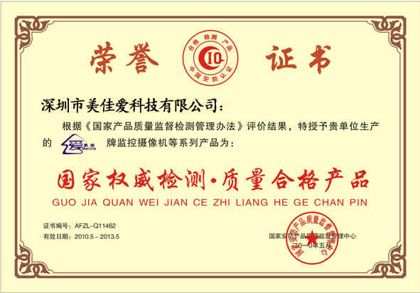 國家權威檢測 質量合格產(chǎn)品證書副本